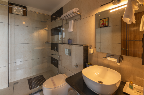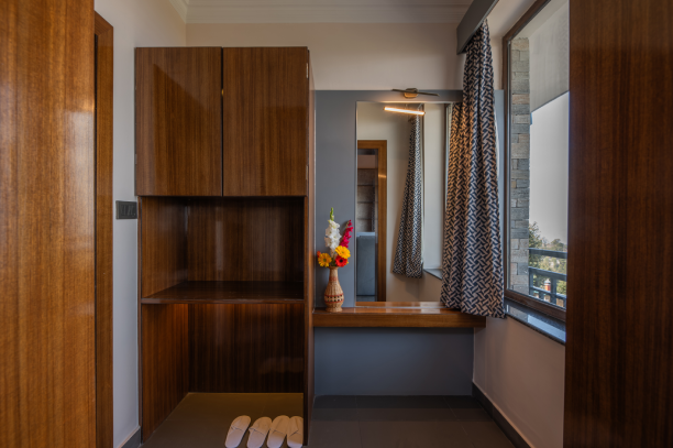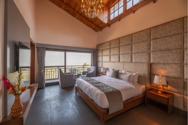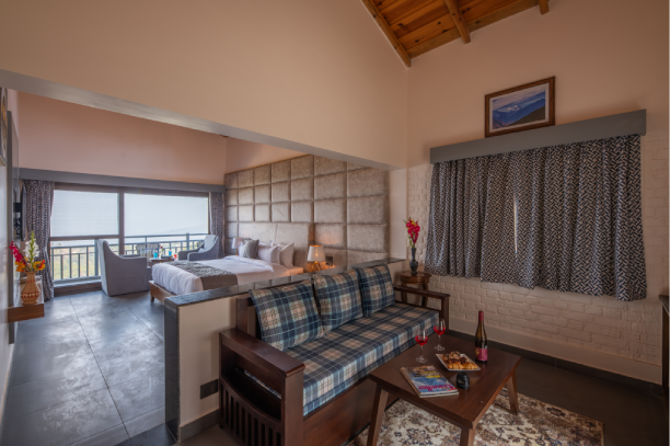 Experience comfort and space in our Family Suite featuring two interconnected rooms, breathtaking Himalayan views, private WiFi, and large French windows. Ideal for families seeking relaxation, privacy, and scenic beauty in a warm, homely setting.